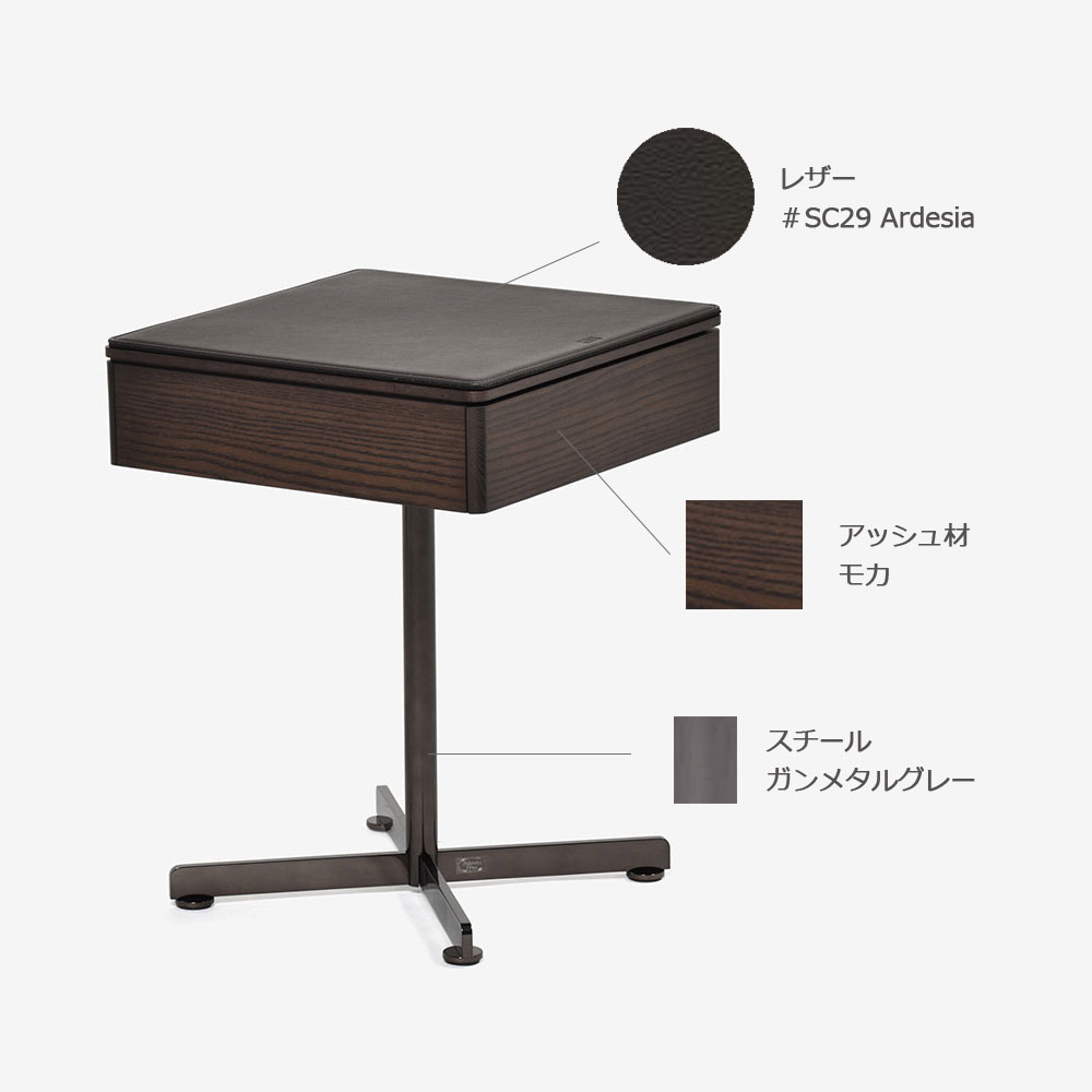引出し付きなのでナイトテーブルとして寝室に適していますが、サイドテーブルとしてリビングや書斎などさまざまなシーンでお使いいただけます。