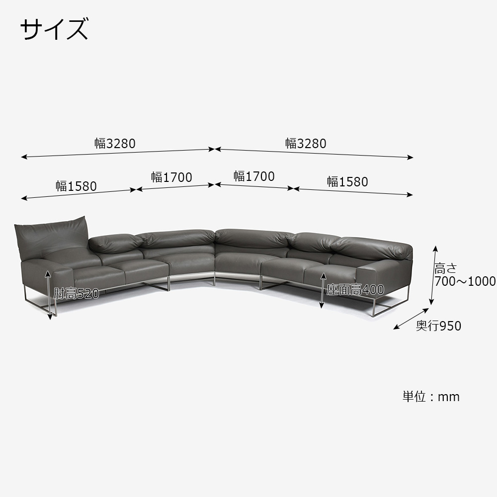 erba(エルバイタリア)コーナーソファ3点セット「フォーエバーヤング」革#C ライトグレー色