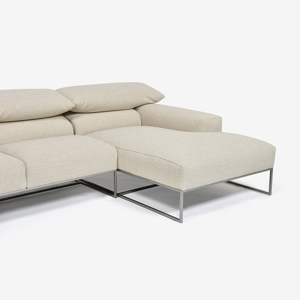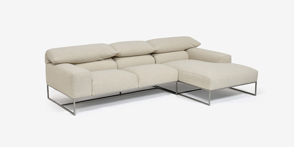 スチール製の脚部は細身のシャープなデザイン。ソファの持つモダンな雰囲気にぴったりです。