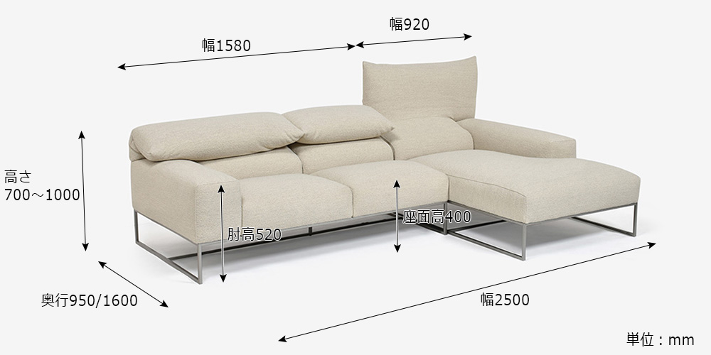 特徴的な丸みのあるデザインの背もたれを伸ばすことでハイバックにできる機能的なソファです。 座面には高密度ウレタンとフェザーを使用し、身体にやさしくフィットする座り心地です。家具工場が母体のブランドだからこそ、充実した自社設備を用いた高品質な構造が魅力です。