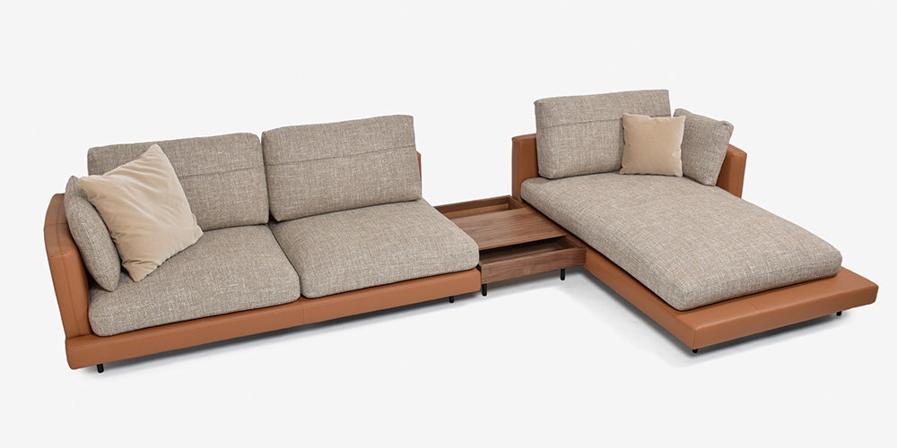 センターテーブル「906-133」は接続型デザインとなっており、SINAシリーズのソファと組み合わせてお使いいただけます。
