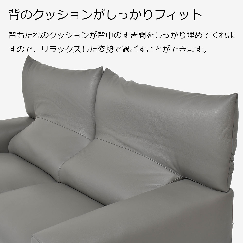 背もたれのクッションが腰の裏の隙間を埋め、ゆったりと背中を預けることができます。※画像はソファ 3人掛けです。
