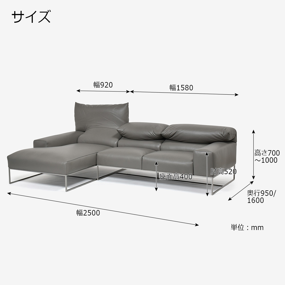 erba(エルバイタリア)カウチソファ2点セット 向って左カウチ「フォーエバーヤング」幅250cm 革#C ライトグレー色