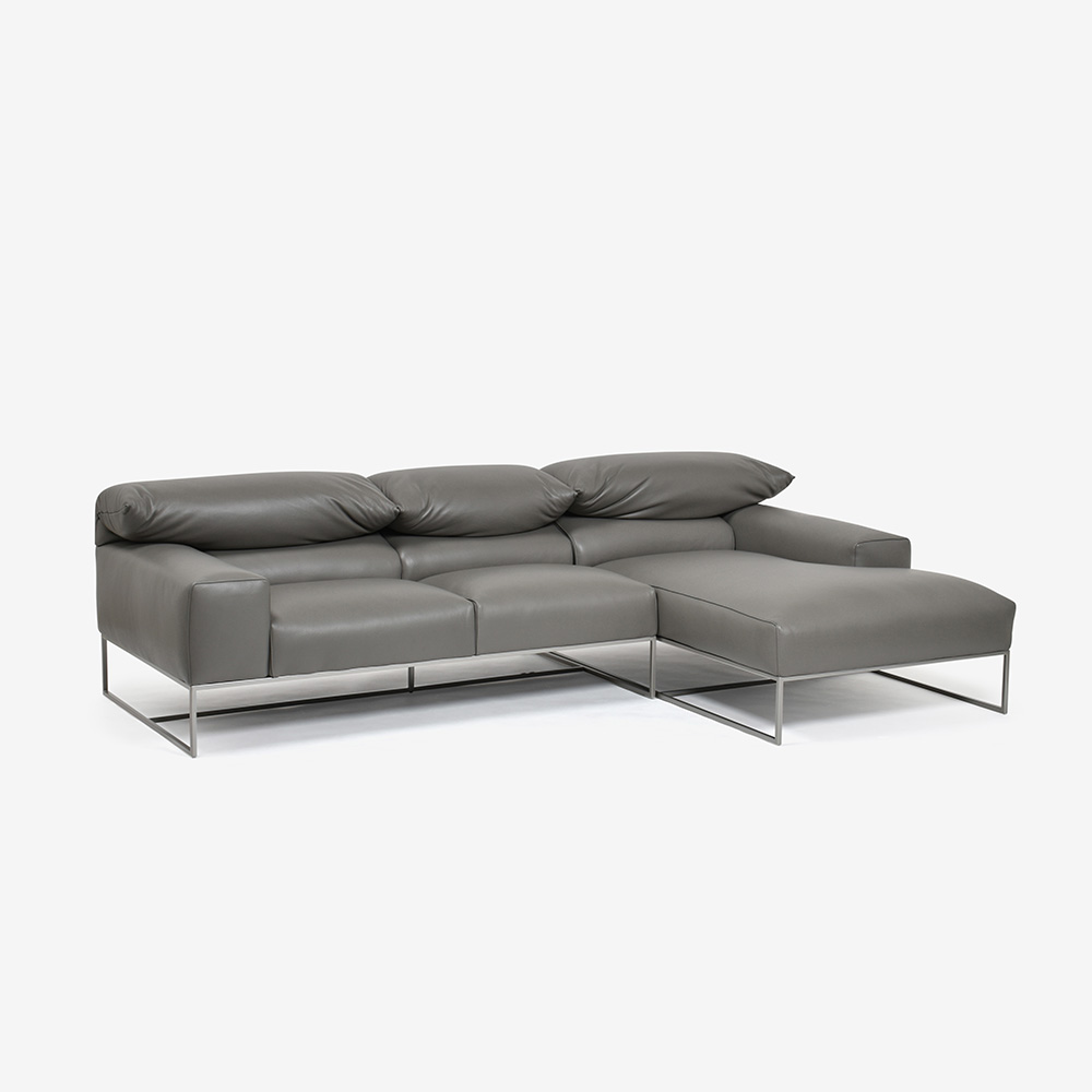 erba(エルバイタリア)カウチソファ2点セット 向って右カウチ「フォーエバーヤング」幅250cm 革#C ライトグレー色