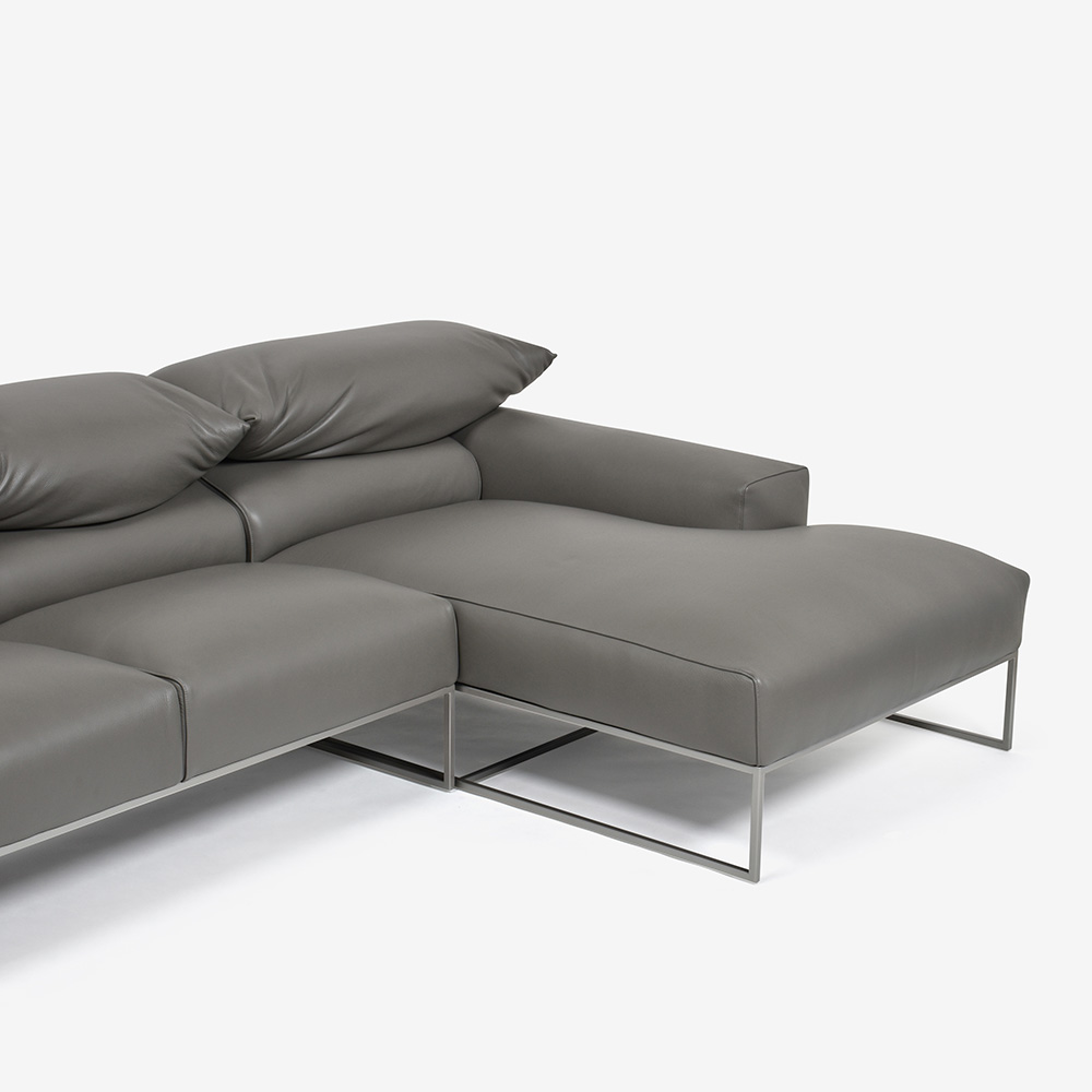スチール製の脚部は細身のシャープなデザイン。ソファの持つモダンな雰囲気にぴったりです。