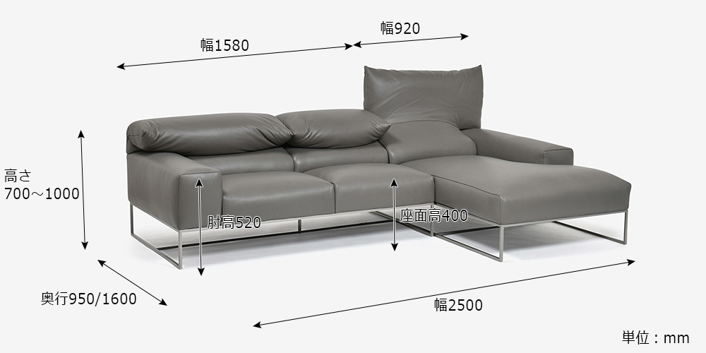 幅2500x奥行950/1600x高さ700〜1000