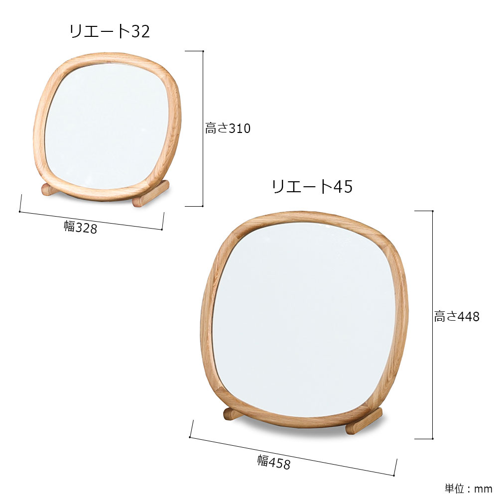 ミラー「リエート」オーク材NA色 全2サイズ