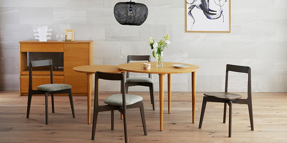 ダイニングテーブル「バルーン」2連伸長式 ホワイトオーク材