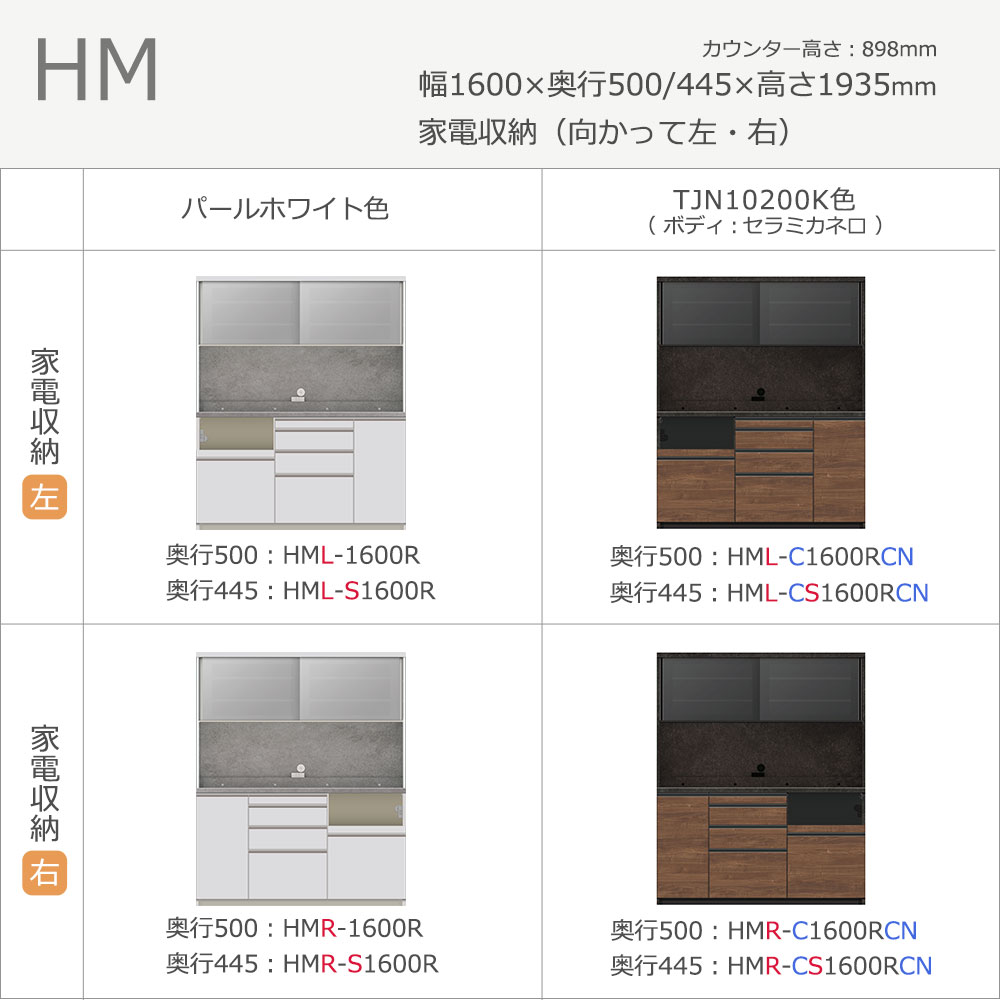Pamouna(パモウナ)オープンボード「HM-1600R」幅160cm 高さ193.5cm 奥行2サイズ(50cm・44.5cm) 家電収納2タイプ(向かって左・右)下台扉収納タイプ 全2色