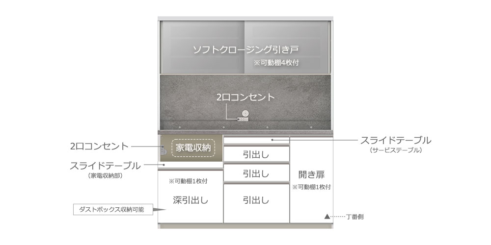 ※画像は家電収納部が向かって左タイプのイメージです。