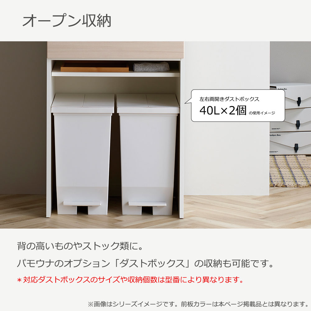 オープン収納部にはパモウナ「オプションダストボックス」を収納可能です。