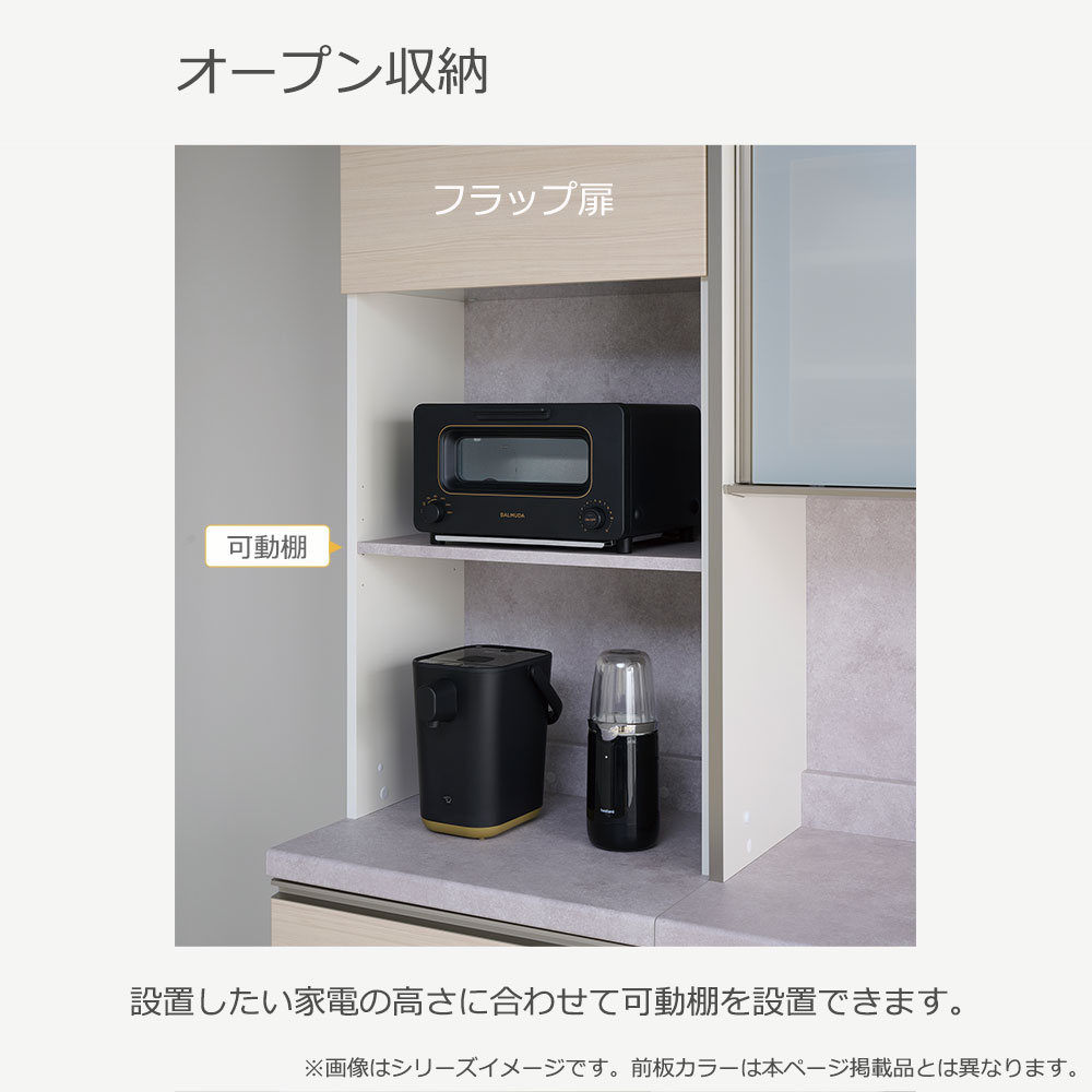 設置したい家電の高さに合わせて可動棚1枚を4段階で調整できます。※画像はシリーズイメージ(本ページ掲載品とは異なる前板カラー「TNY2682K」を使用)です。