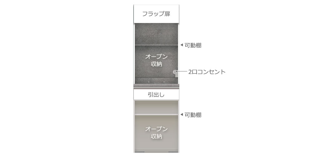 ※オーブンレンジや炊飯器などの外部に蒸気や熱を放出する電化製品を収納する場合は、ご使用になる製品の取り扱い説明書に従ってください。