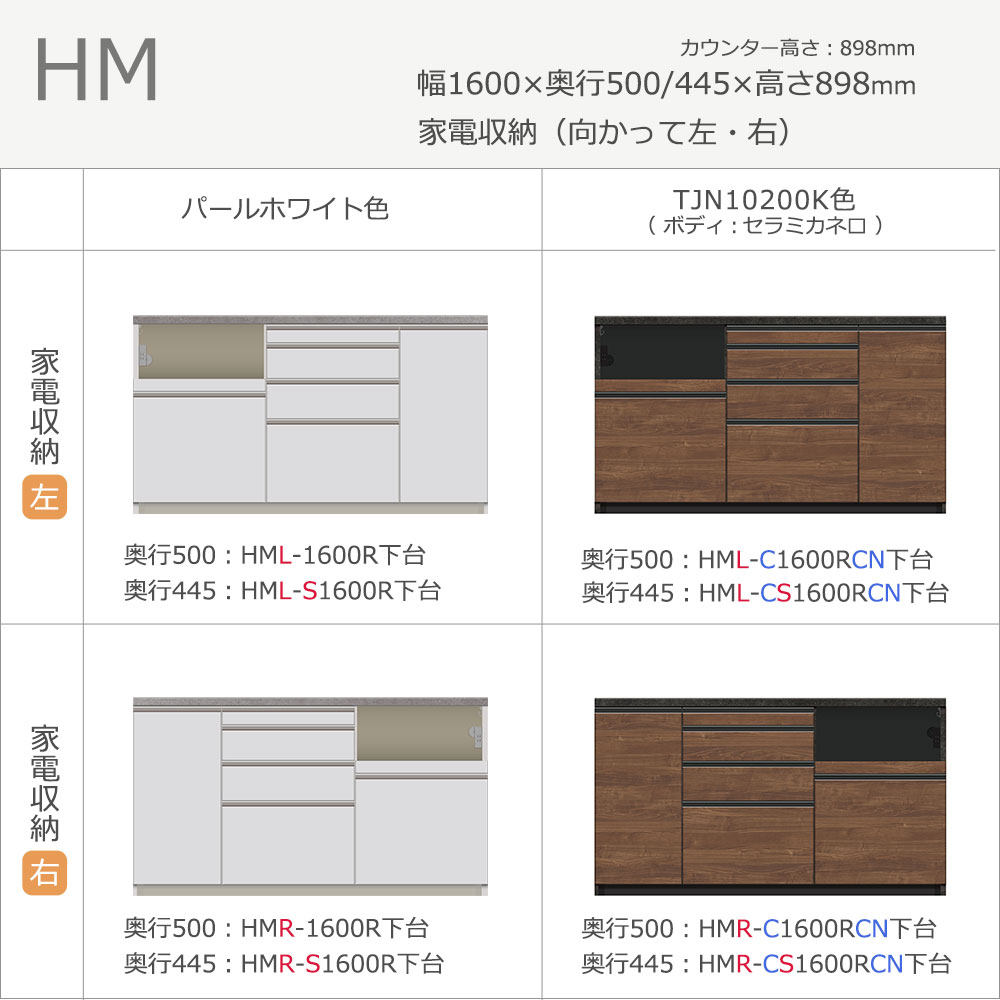 Pamouna(パモウナ)カウンター「HM-1600R」幅160cm 扉収納タイプ 高さ89.8cm 奥行2サイズ(50cm・44.5cm)家電収納(向かって左・右) 全2色