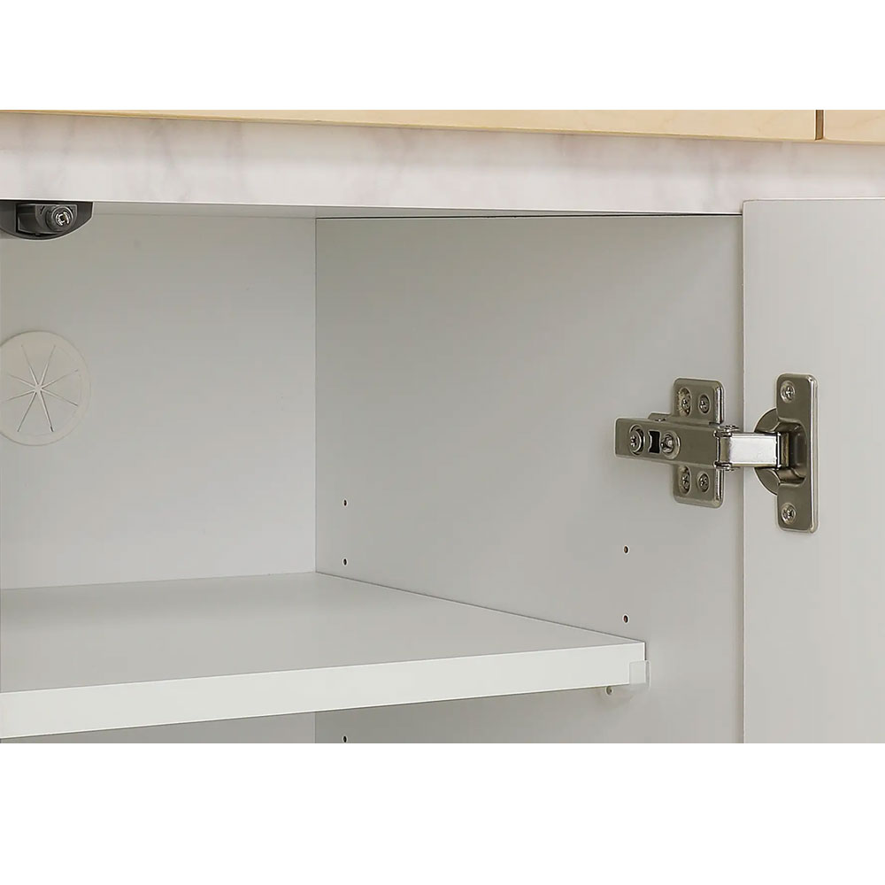 前板には、明るい印象を与えるバーチ無垢材を使用した格子デザインが北欧インテリアのような印象と高級感を合わせ持ちます。