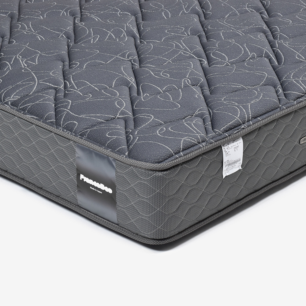 体圧を”面”で支える高密度連続スプリング®をさらにダブル枠線仕様にすることで高い安定性を実現し、サポート力に優れたマットレスです。適度な反発力があることで余計な力を使わずに自然な寝返りができます。吸湿発散性に優れた羊毛綿を使用し、快適な睡眠をサポートします。