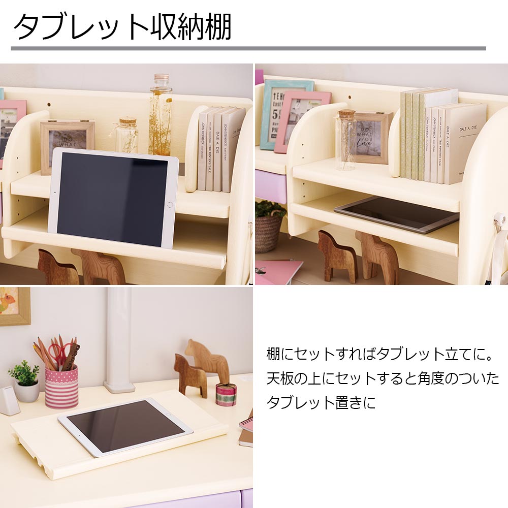タブレット収納棚は奥行2段階調節ができ、タブレット立てにもできます。