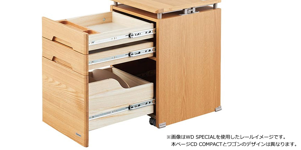 CD CONPACTシリーズの仕様変更に伴い、本ページ掲載モデルの「ワゴン」は天板のリフティング機能がございませんので予めご了承ください。
