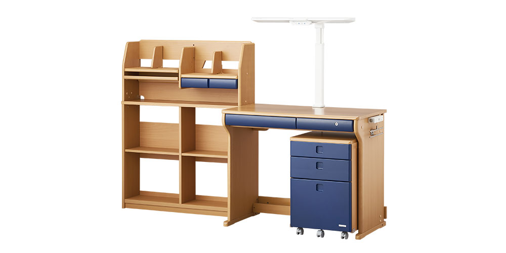 生活スタイルやお子様の成長に合わせて組み替えができるステップアップデスクです。ナラ材の質感が落ち着いた印象ですので、長い期間ご使用いただけます。※画像はイメージです。