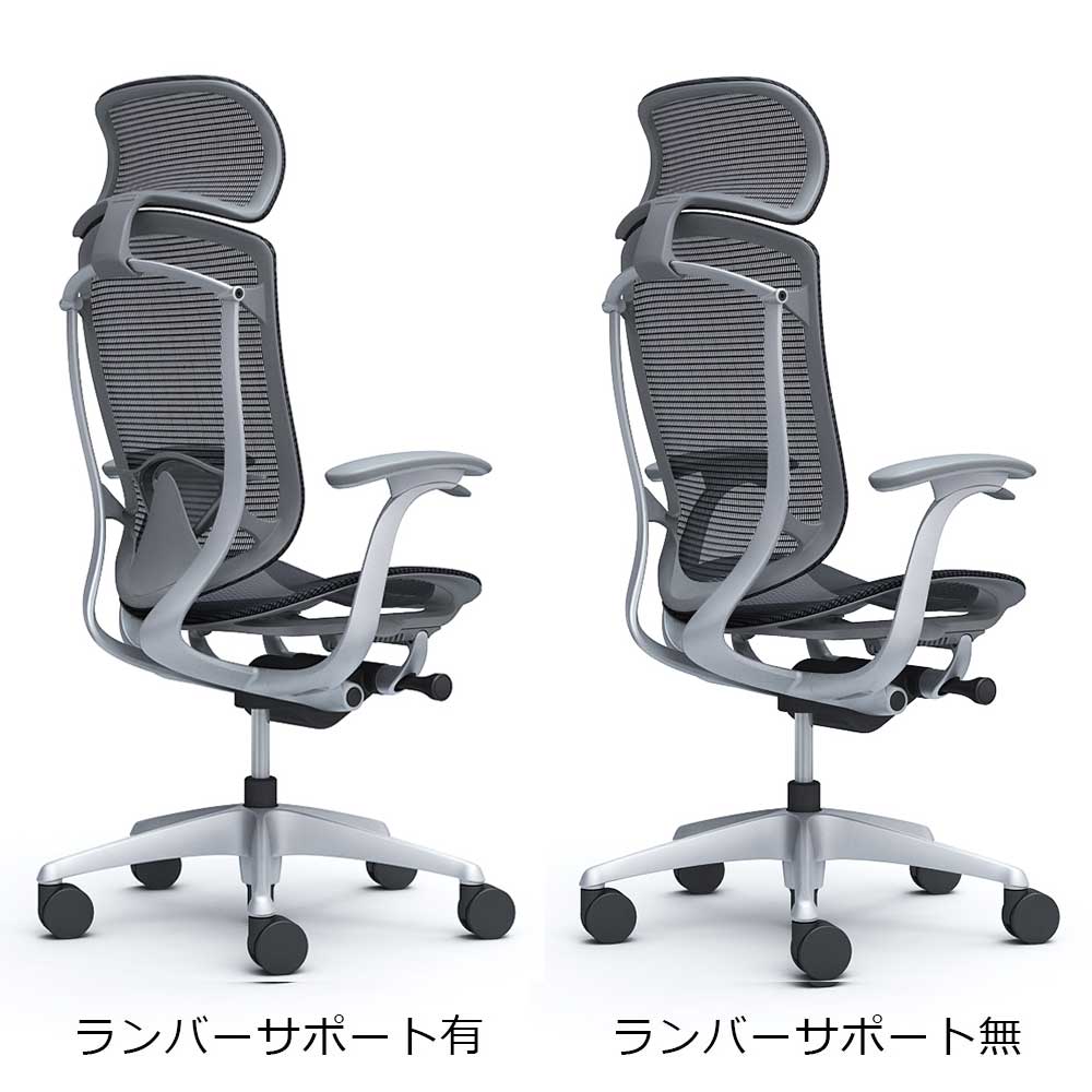 腰を心地よくホールドするランバーサポート有「CC45GE」または、ランバーサポート無「CC45GA」からお選びいただけます。※画像の張地はFPG1(ブラック)を使用しています。