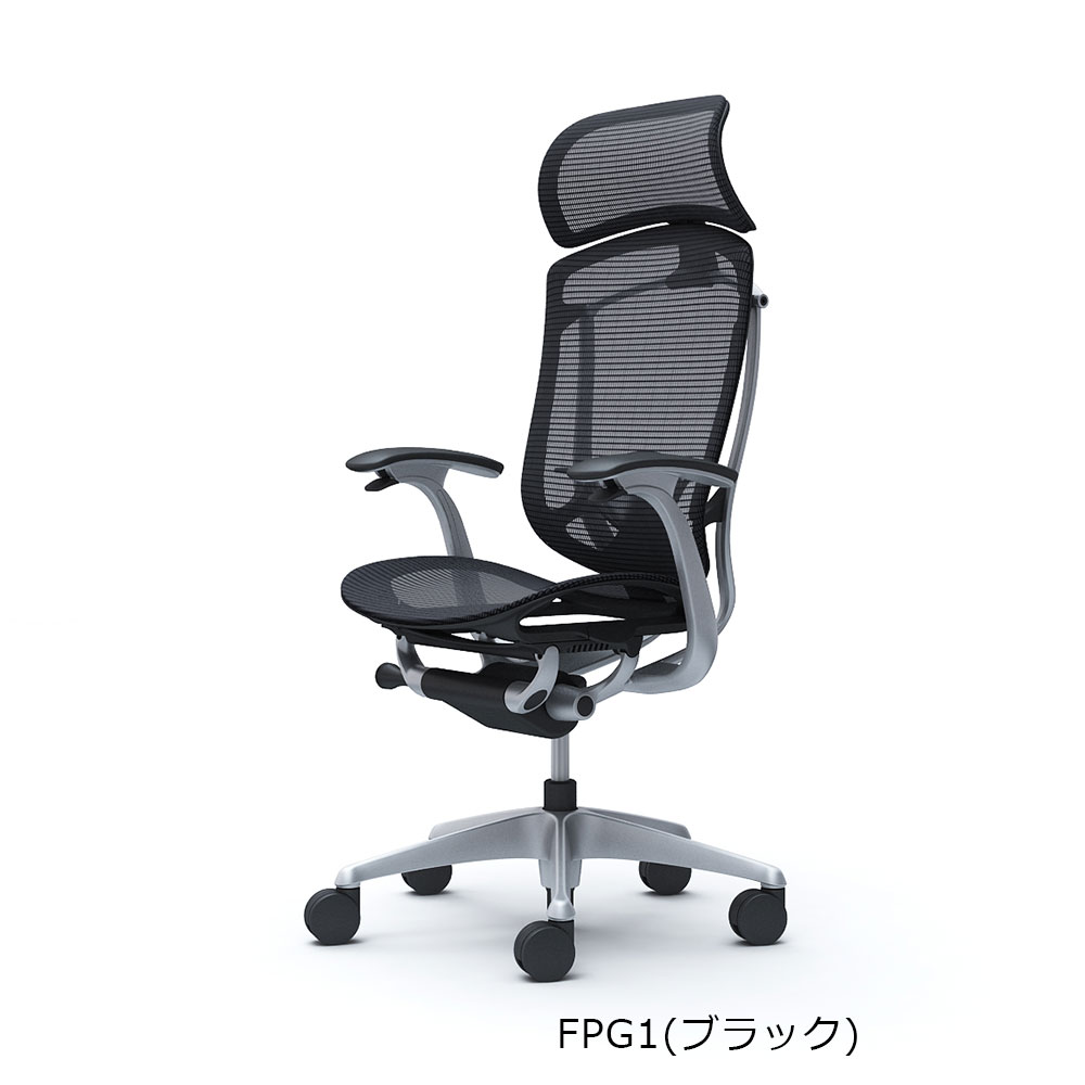 「コンテッサセコンダ」座面/メッシュ フレームカラー/シルバー ボディーカラー/ブラック 大型ヘッドレスト デザインアーム 張地全13色 ランバーサポート有・無【受注生産品】okamura(オカムラ)