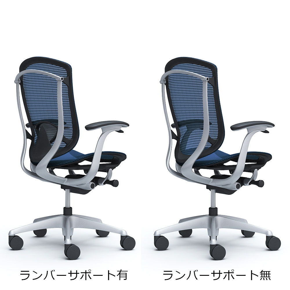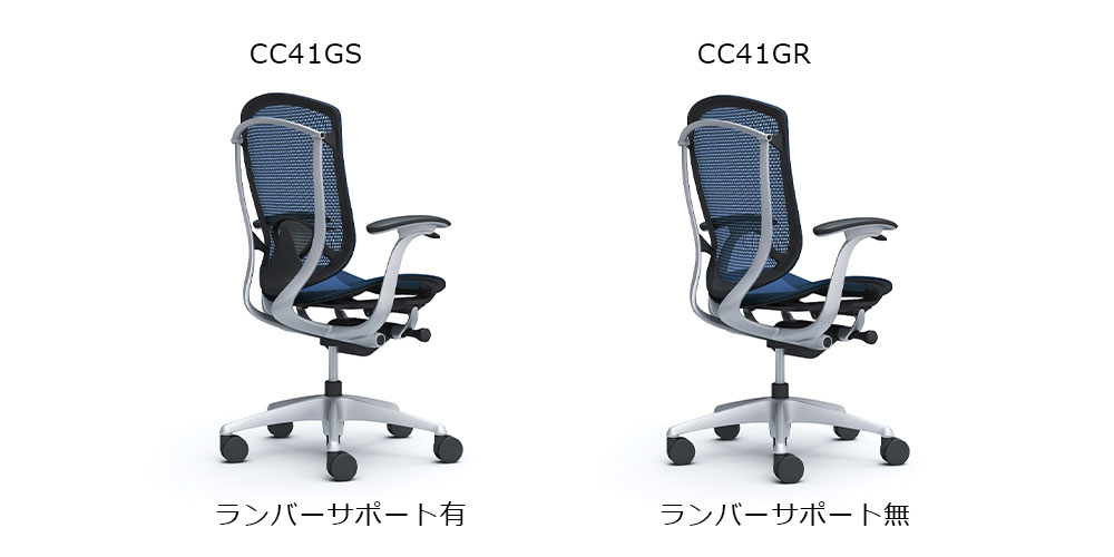 腰を心地よくホールドするランバーサポート有「CC41GS」または、ランバーサポート無「CC41GR」からお選びいただけます。※画像の張地はFPG4(ダークブルー)を使用しています。