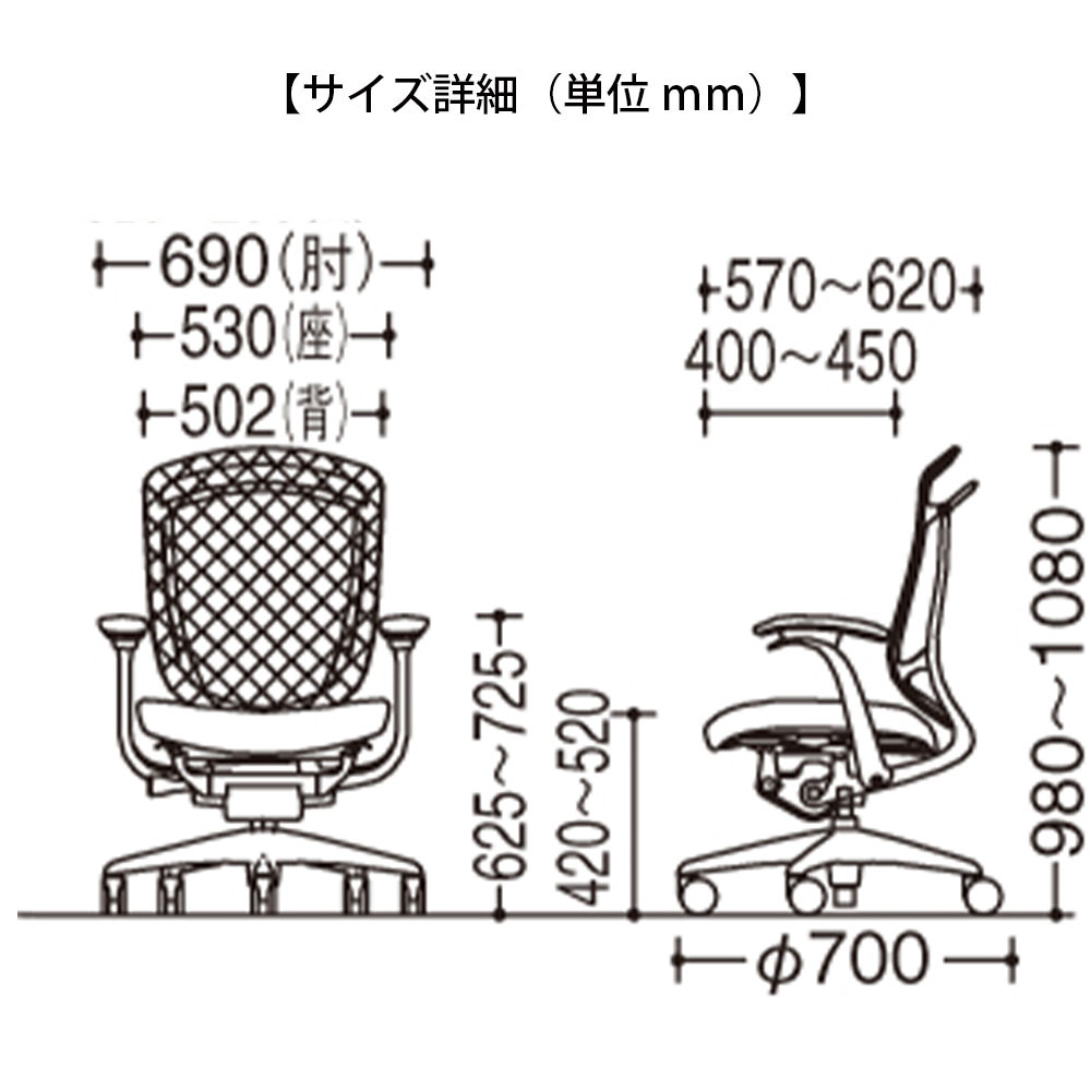 幅(肘含む)690x奥行570〜620x高さ(背)980〜1080
