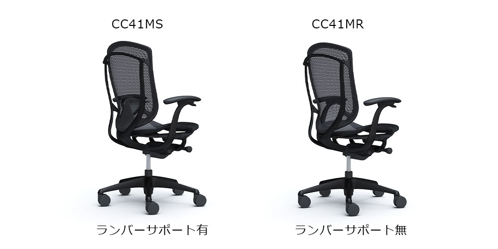 腰を心地よくホールドするランバーサポート有「CC41MS」または、ランバーサポート無「CC41MR」からお選びいただけます。※画像の張地はFPG1(ブラック)を使用しています。