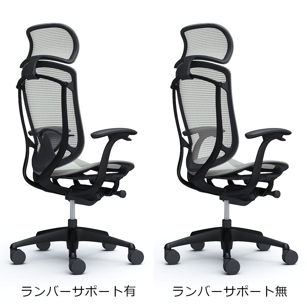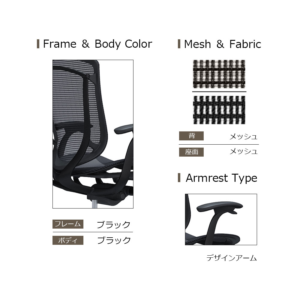 「コンテッサセコンダ」座面/メッシュ フレームカラー/ブラック ボディーカラー/ブラック 大型ヘッドレスト デザインアーム 張地全13色 ランバーサポート有・無【受注生産品】okamura(オカムラ)