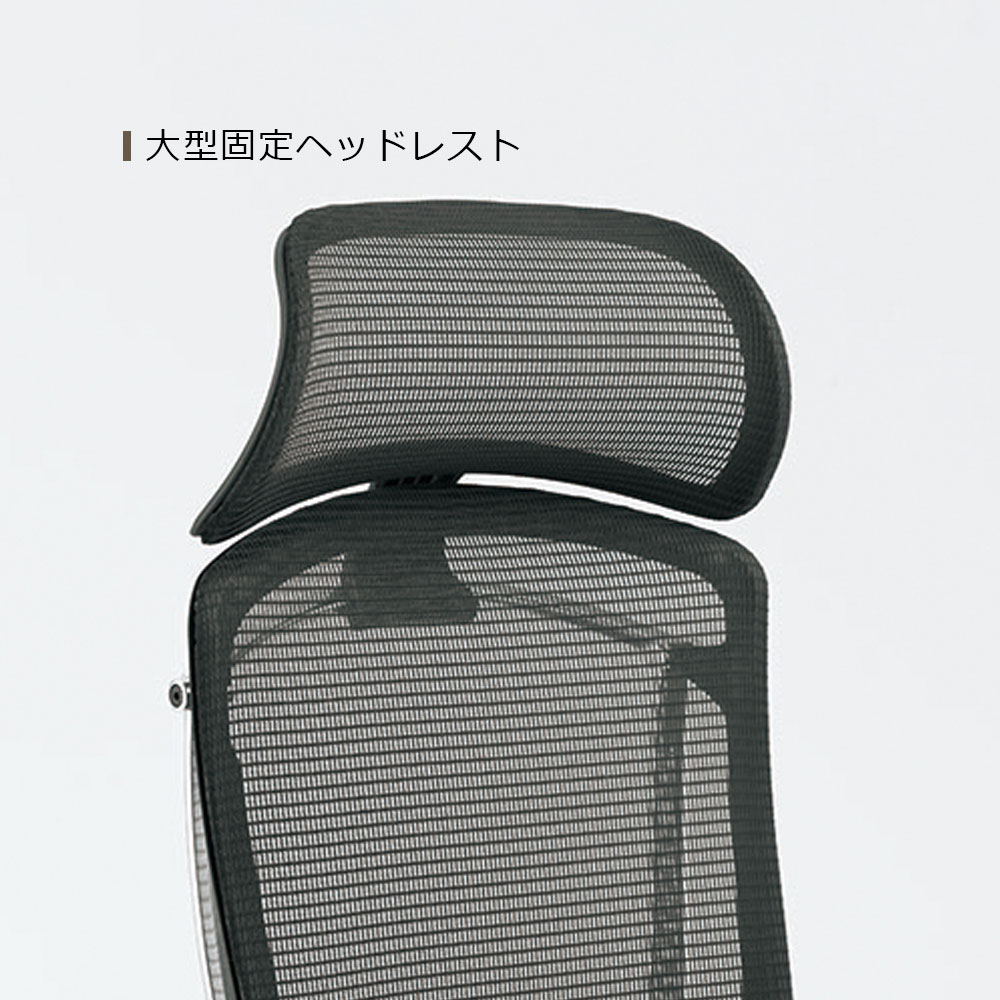 ワイドタイプの固定式ヘッドレスト。後頭部をやさしく支えることができます。