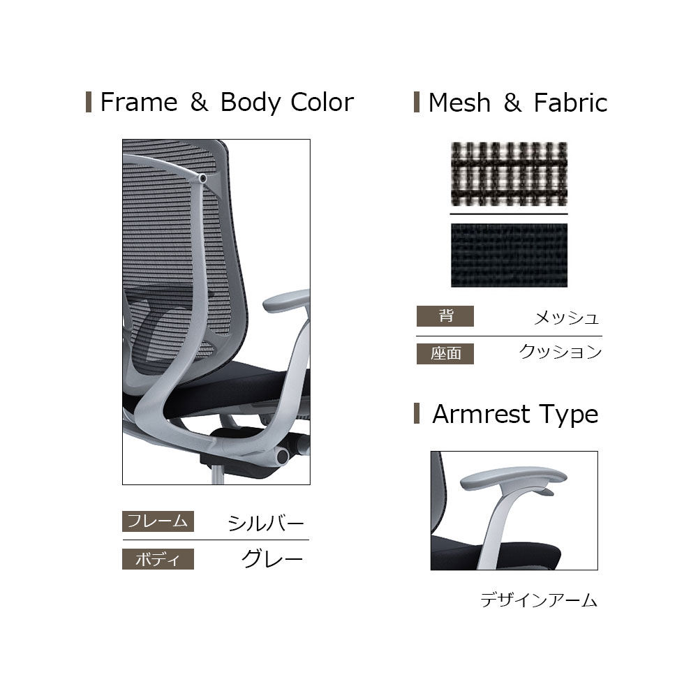 「コンテッサセコンダ」座面/クッション フレーム/シルバー ボディーカラー/グレー ハイバック デザインアーム 張地全13色 ランバーサポート有・無【受注生産品】okamura(オカムラ)