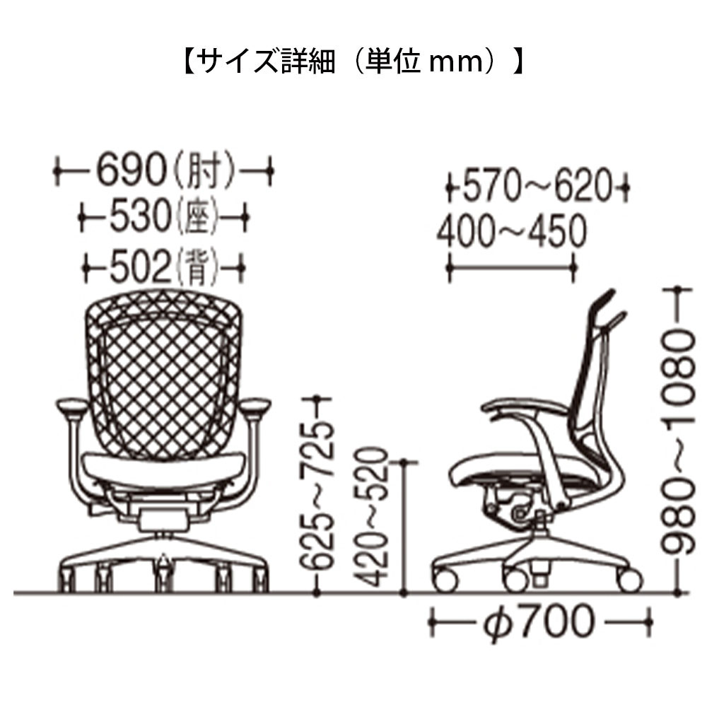 幅(肘含む)690x奥行570〜620x高さ(背)980〜1080