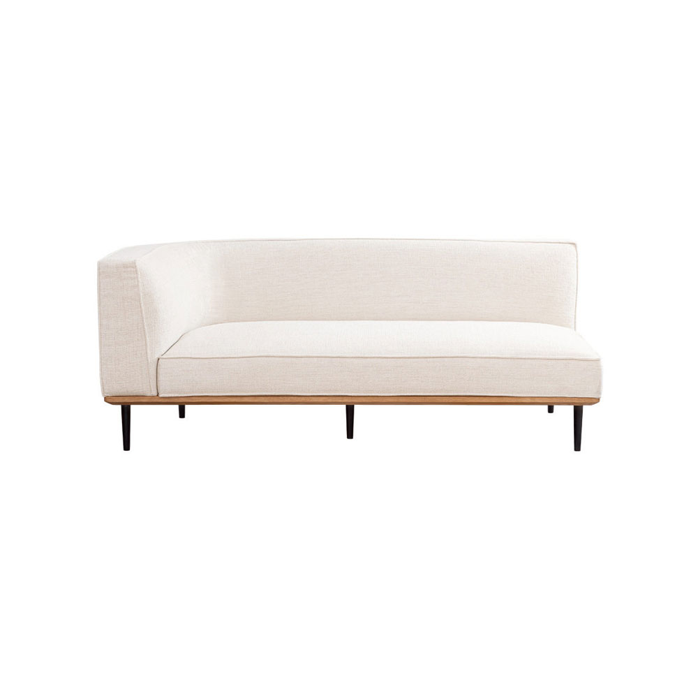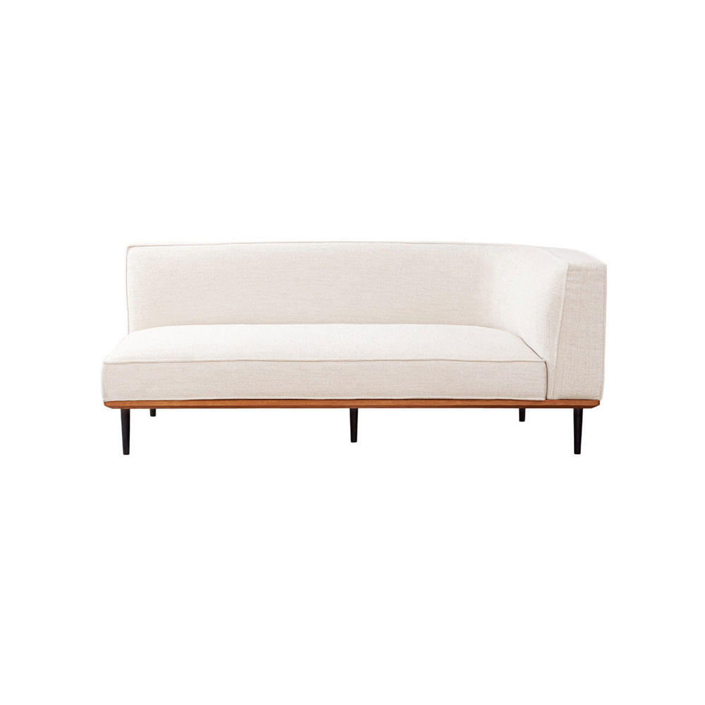 片肘の背もたれやクッションの膨らみなど、全体的に丸みを持たせ、さらに高さを抑えたことで、圧迫感のない優しい印象です。良質なオーク無垢材を使った台輪は、長年の使用に耐えうるしっかりとした厚みがありながら、角部分を面取り加工することで本来の厚みを感じさせないデザインです。