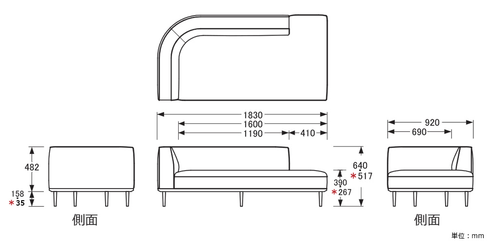 幅1830x奥行920x高さ640