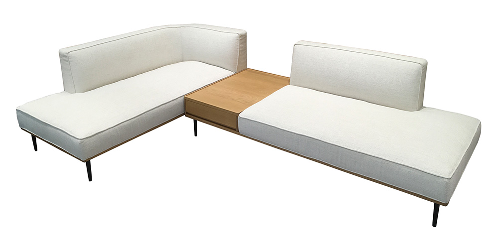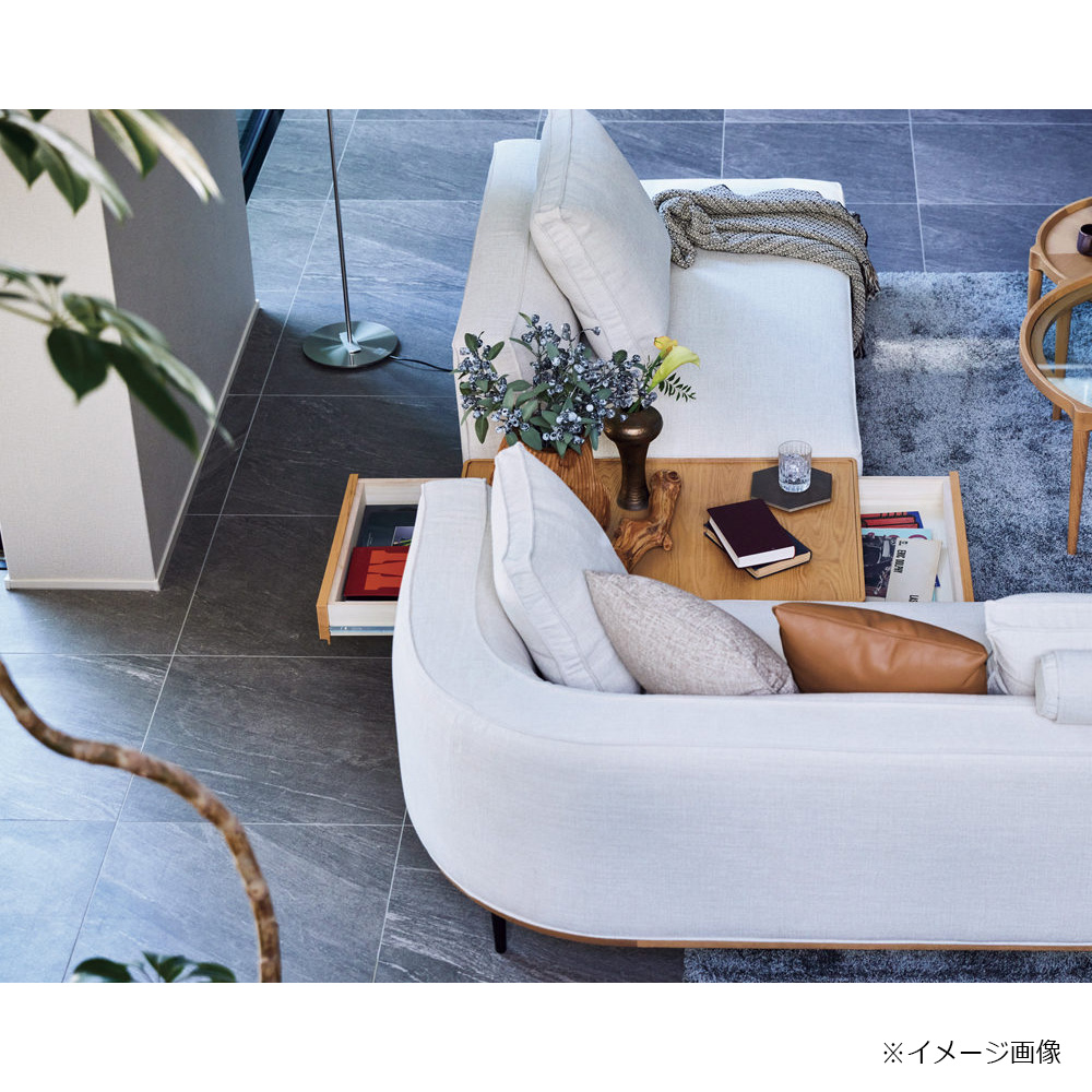 自分らしい空間づくりを可能にするNo.6000リビングシリーズ。引出し付きサイドテーブルと一体化したソファと、丸みのある優しいデザインのカウチソファの組み合わせです。