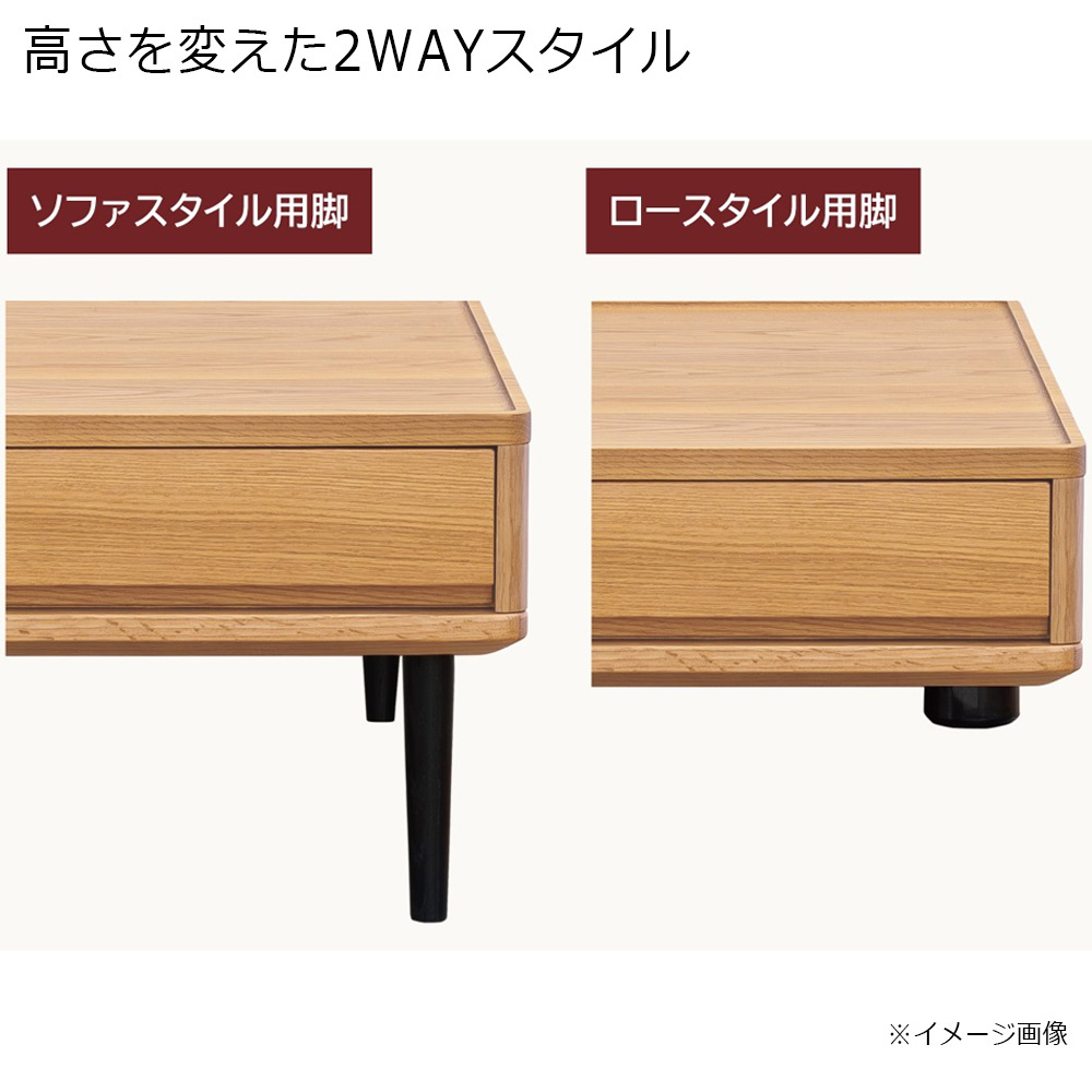 丸テーパー加工を施した細身の木製脚は、脚元を軽やかに見せてモダンな印象を与えてくれます。また付属のロースタイル用脚に付け替えることで、座面を低くしてお使いいただけます。