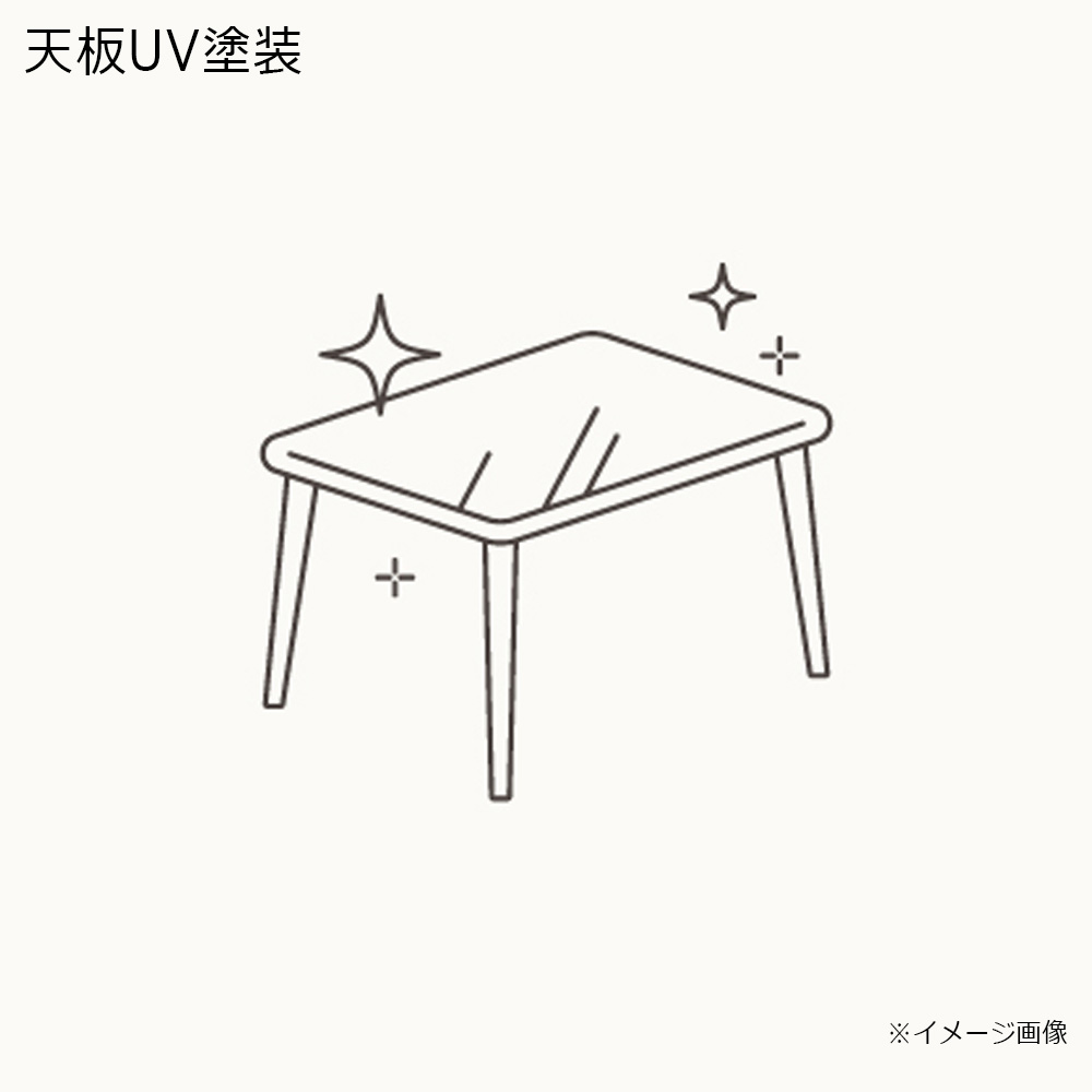 良質なオーク突板を職人が一枚一枚手貼りで仕上げた矢張り天板です。キズや汚れに強いUV塗装を施し、メンテナンス性にも優れています。