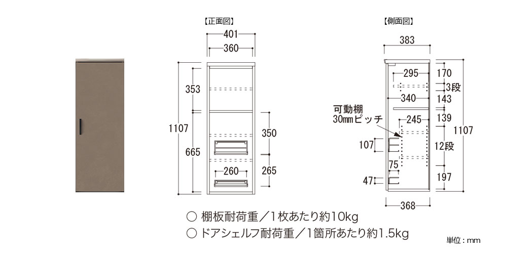 AYANO(綾野製作所)ダイニングボード「アデル」板扉タイプ 幅40.2cm 奥行50cm 高さ202cm 全2色