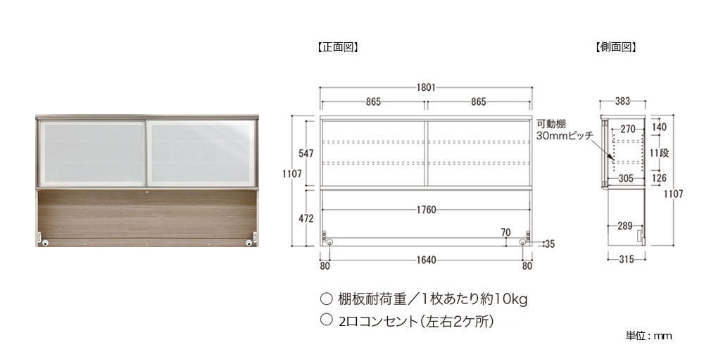 オーブンレンジや炊飯器などの外部に蒸気や熱を放出する物を収納する場合は、ご使用になる家電製品の取り扱い説明書に従ってください。