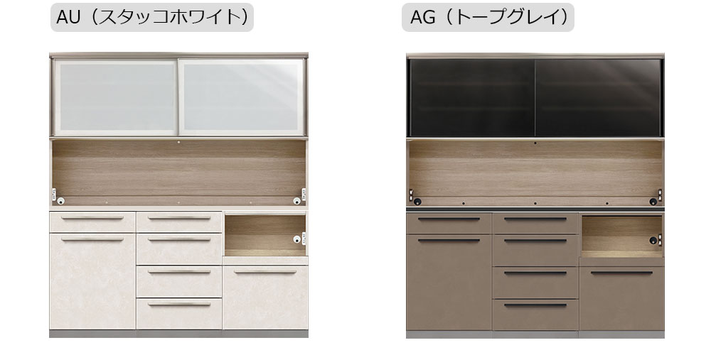 カラーバリエーションは2色。AU(スタッコホワイト)は、少しベージュがかった落ち着きのあるホワイト色。表面は漆喰調で角度によってさまざまな表情があり、瑞々しい上品なたたずまいを感じられます。AG(トープグレイ)は、温かみのあるベージュを含んだグレイ色。ニュートラルなアースカラーに質感をプラス。空間に上品さと落ち着きをもたらします。