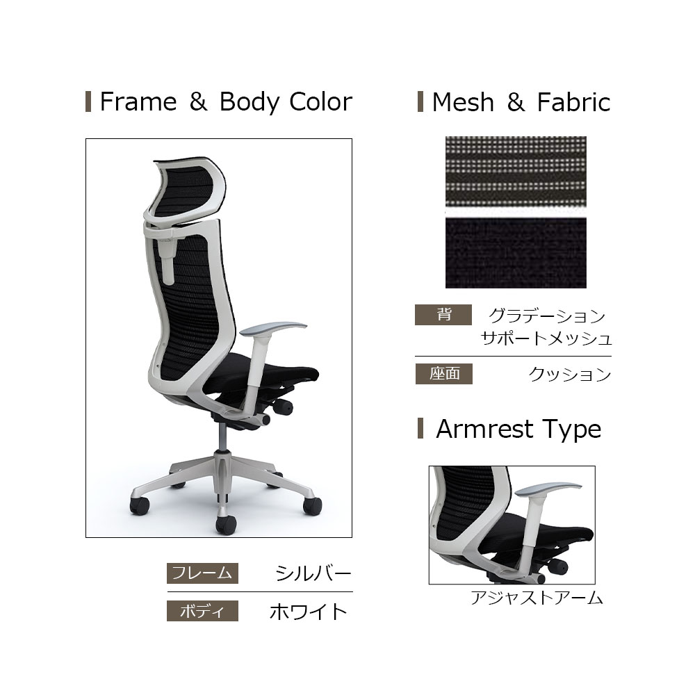 「バロンチェア CP81DW-FGR 」エクストラハイバック 可動ヘッドレスト 座面/クッション 背/グラデーションサポートメッシュ フレーム/シルバー ボディーカラー/ホワイト アジャストアーム 全6色【受注生産品】okamura(オカムラ)
