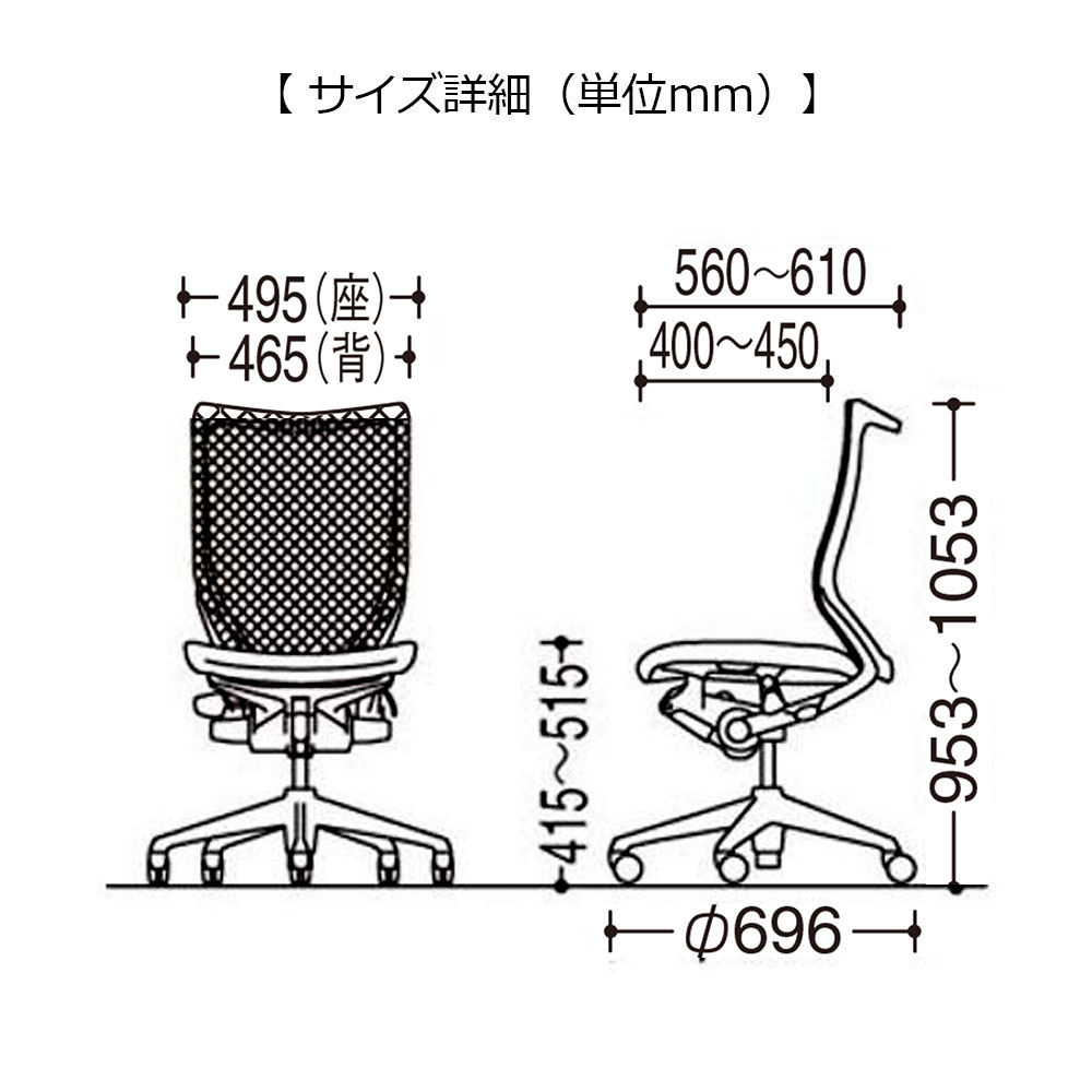 背のメッシュ部分の織りに濃淡をつけ、座り心地を向上させた「グラデーションサポートメッシュ」モデルです。しっかりサポートしたい腰まわりは密度を細かくし、背中の部分は密度を粗くしてソフトにフィットします。