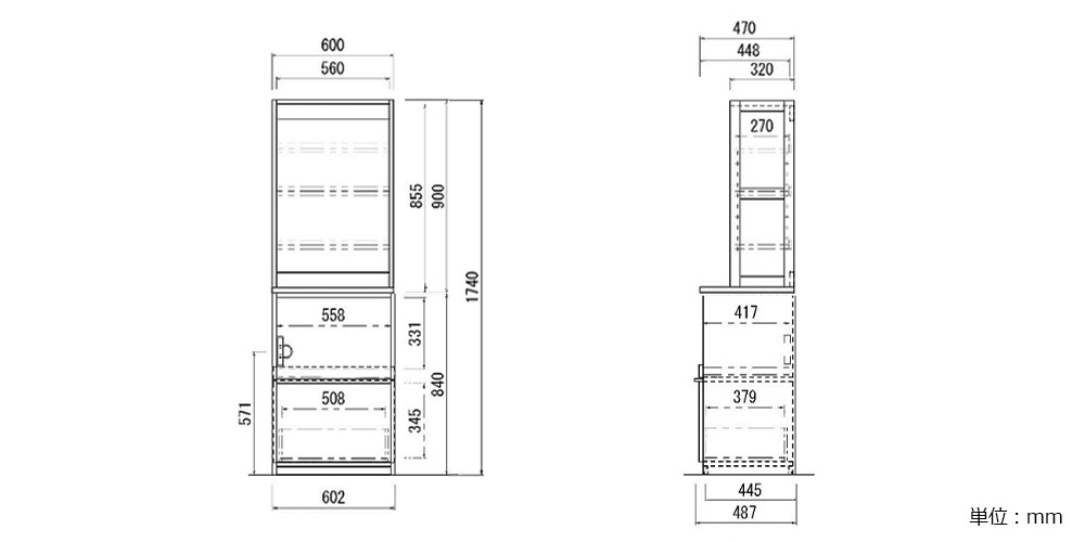 hotta woody(堀田木工所)ダイニングボード「ノーヴァ2 WN」上台60オープン 下台60オープン 幅60.2cm 奥行48.7cm 高さ174cm【オンラインショップ限定品】