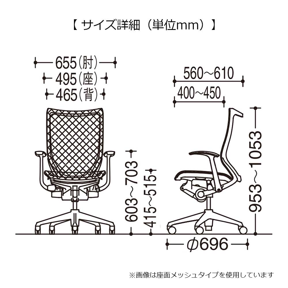 幅655(肘)x奥行560〜610x高さ953〜1053