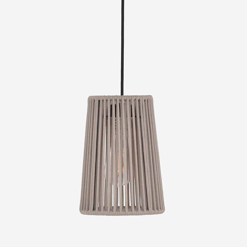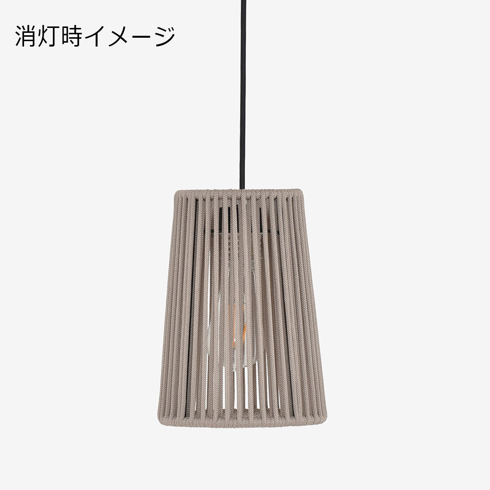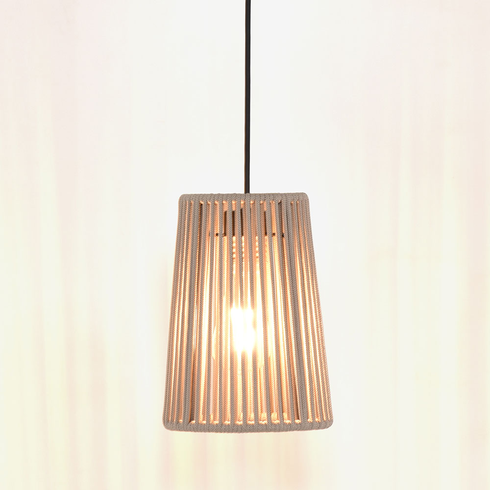ハンドメイドで巻きつけられたコードの隙間から漏れる光が絶妙で、周囲に広がる影が洗練された雰囲気を演出します。