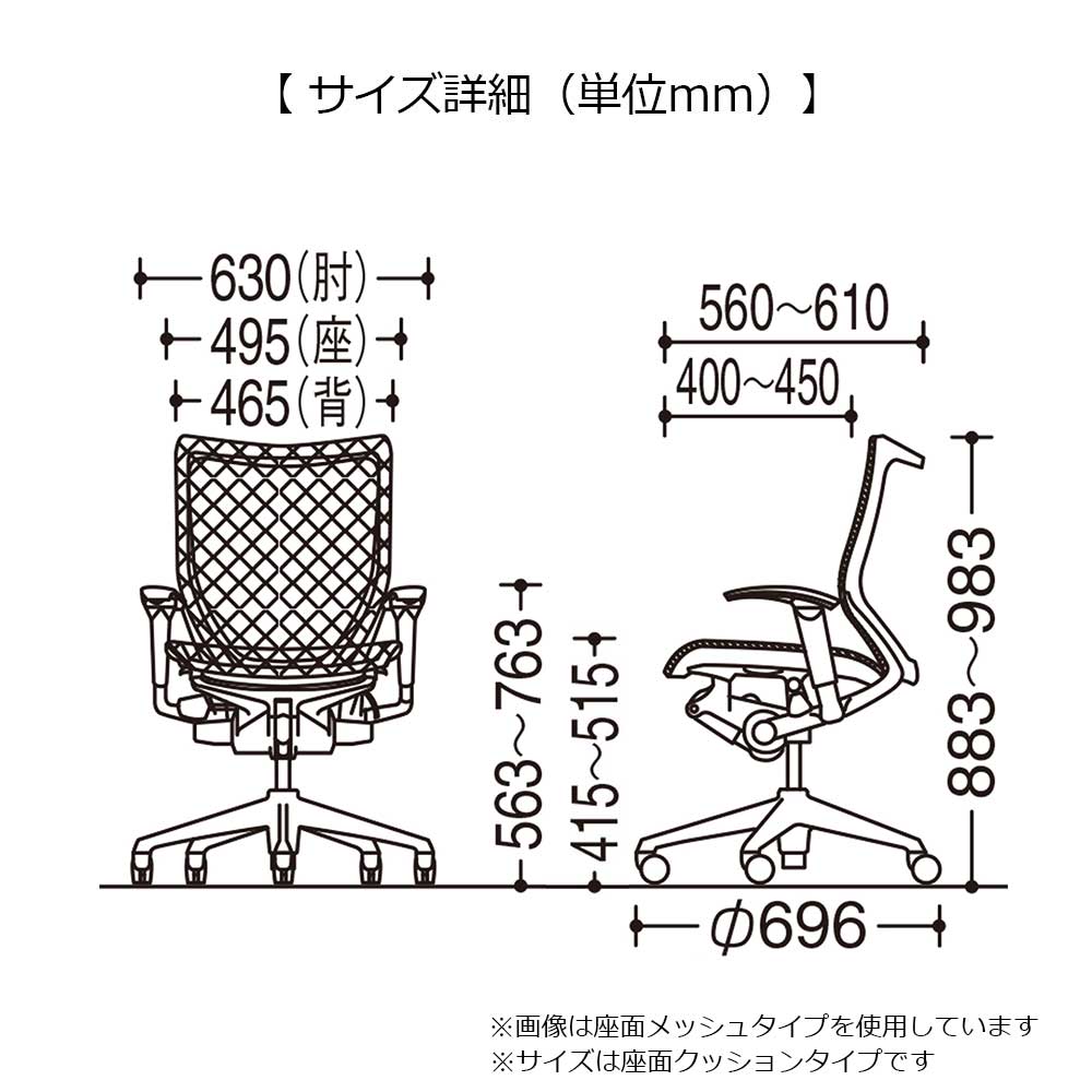 背のメッシュ部分の織りに濃淡をつけ、座り心地を向上させた「グラデーションサポートメッシュ」仕様です。しっかりサポートしたい腰まわりは密度を細かくし、背中の部分は密度を粗くしてソフトにフィットします。