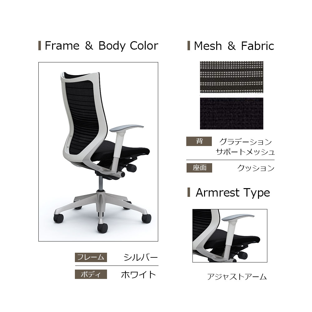 「バロンチェア CP85DW-FGR」ハイバック 座面/クッション 背/グラデーションサポートメッシュ フレーム/シルバー ボディーカラー/ホワイト アジャストアーム 張地全6色【受注生産品】okamura(オカムラ)