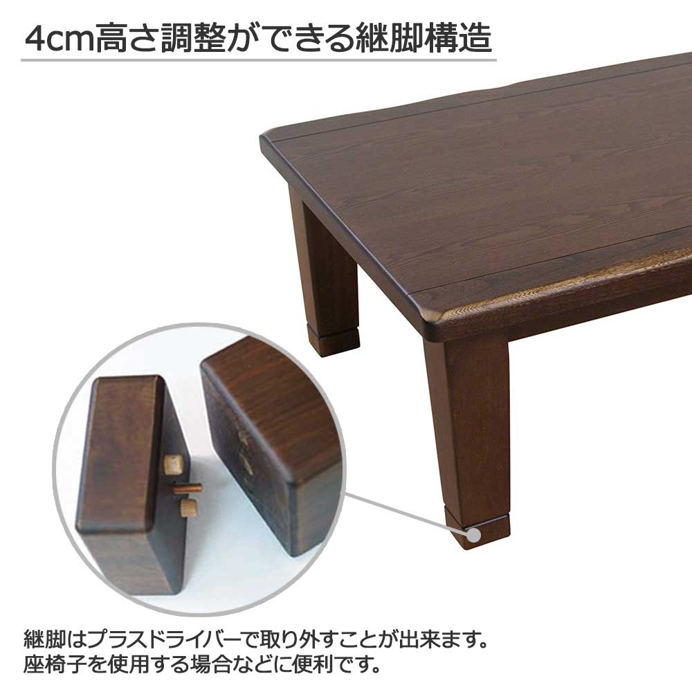 座椅子を使用する場合は高くする等、用途に合わせて4cm高さを調節可能です。継脚はプラスドライバーで取り外すことができます。