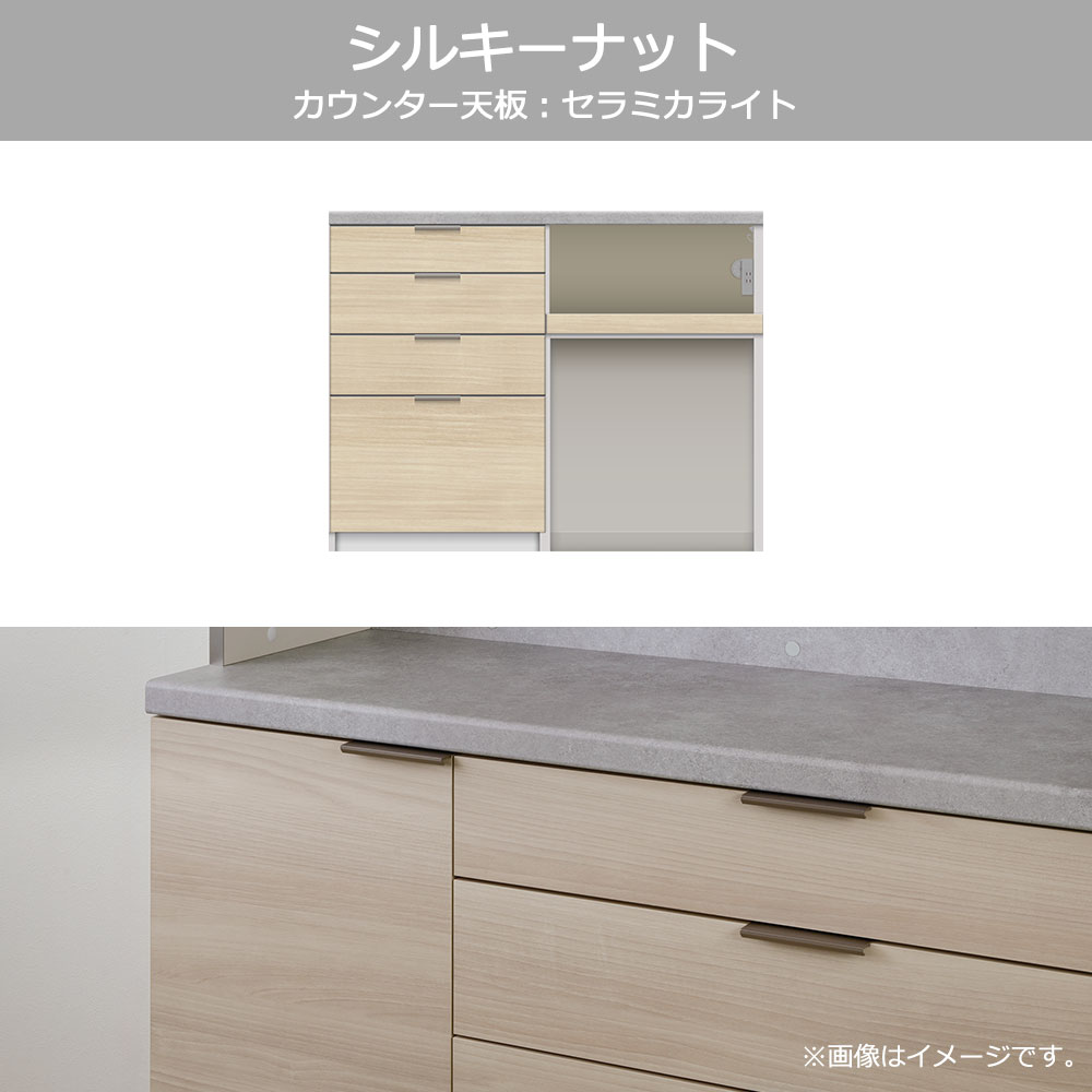 キッチン収納に必要な機能がまとまったハイカウンタータイプのキッチンカウンターです。家電収納下はストック品やダストボックスの収納に便利なオープンタイプです。※画像はイメージです。