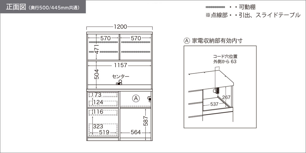 | 奥行445mm | 幅1200x奥行445x高さ1975 |